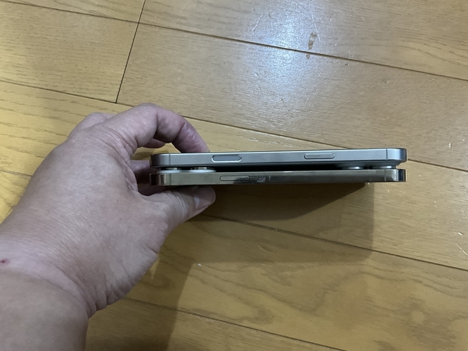 前の14Pro Maxとの比較はこんな感じである。16の方が少し縦に長く、かつ薄くなってるのである。Apple WatchもiPadもそうであるが、最近のトレンドは「薄く、幅広く、軽く」みたいなのである。まぁこの手のデジタルガジェットのイノベーションはほぼ枯渇してるんで、こういうトコで差を付けるしかないのであろう。